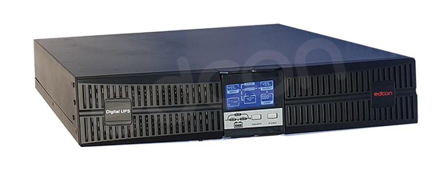 Spesifikasi Lainnya True online smart UPS, bentuk: rackmount/tower, 1-1 phase, pure sine wave, built-in AVR, DSP controller, LCD display, push button, LED indicator. Input: 110-290 VAC, Freq 40-70 Hz, PF ≥ 0.98. Output: 220/230/240 VAC ±1%, Freq 50/60 Hz ±0.1Hz, PF 0.9. Overload: 105%-125% (50sec), 150% (25sec), ≥ 150% (300ms). Proteksi: overload, overcharge, low/high voltage, short circuit, voltage/frequency fluctuation, surge, power blackout. Alarm untuk kondisi abnormal. Communication port: RS232/USB, Dry contact, Parallel kit (optional), SNMP (optional).