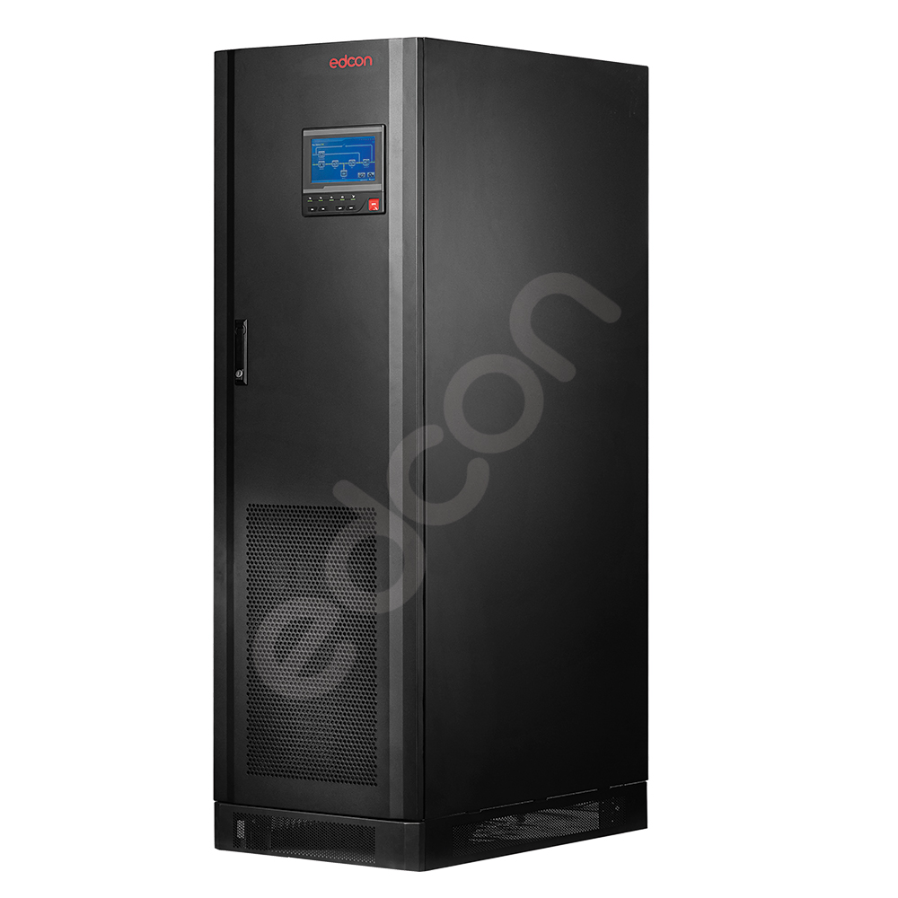 Spesifikasi Lainnya True online UPS with galvanic isolation transformer, 3-3 phase, pure sine wave, built-in AVR, DSP controller, LCD display touch screen, anti petir. Input: 380/400/415±25%, 50/60Hz±10%, Power Factor ≥ 0.95, THD ≤ 2% (linear load). Output: L-N:220/230/240VAC±1%, L-L:380/400/415±1%, Frekuensi 50/60Hz ±0.2. PF 0.9. Overload: 125% (10mnt), 150% (1min), >200% (100msec). Proteksi: overload, overcharge, low/high voltage, short circuit, voltage/frequency fluctuation, surge, power blackout, anti petir. LCD touch screen, LED, EPO. Bypass maintenance. Alarm untuk kondisi abnormal. Comm-port: RS485, MODBUS, Dry contacts, SNMP optional.