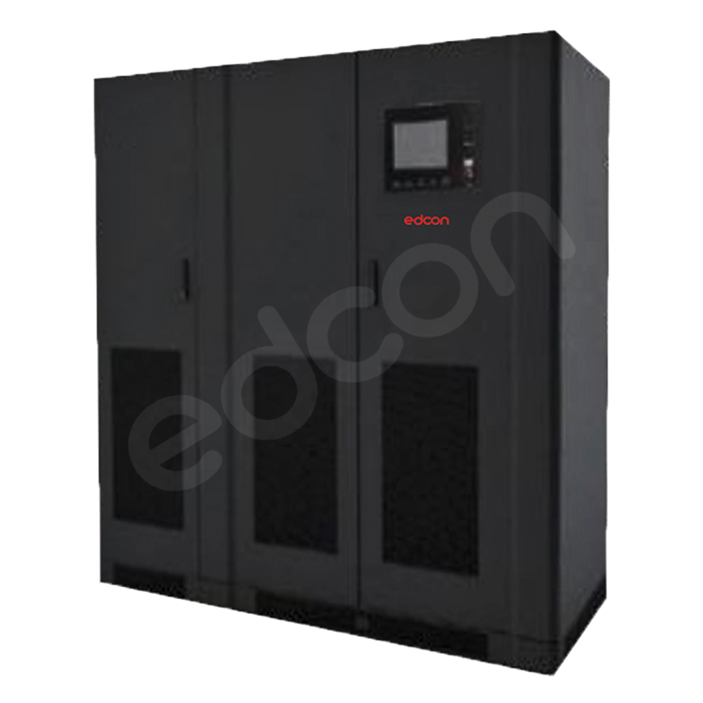 True online UPS with galvanic isolation transformer, 3-3 phase, pure sine wave, built-in AVR, DSP controller, LCD display touch screen, anti petir. Input: 380/400/415±25%, 50/60Hz±10%, Power Factor ≥ 0.95, THD ≤ 2% (linear load). Output: L-N:220/230/240VAC±1%, L-L:380/400/415±1%, Frekuensi 50/60Hz ±0.2. PF 0.9. Overload: 125% (10mnt), 150% (1min), >200% (100msec). Proteksi: overload, overcharge, low/high voltage, short circuit, voltage/frequency fluctuation, surge, power blackout, anti petir. LCD touch screen, LED, EPO. Bypass maintenance. Alarm untuk kondisi abnormal. Comm-port: RS485, MODBUS, Dry contacts, SNMP optional. |